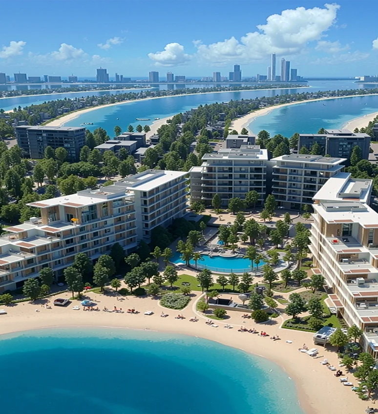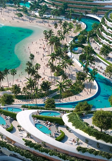 Residents can expect a resort-inspired island lifestyle, including private beaches, marinas, beach clubs, waterfront promenades, wellness facilities, dining destinations, and green open spaces — all integrated into a master-planned community.